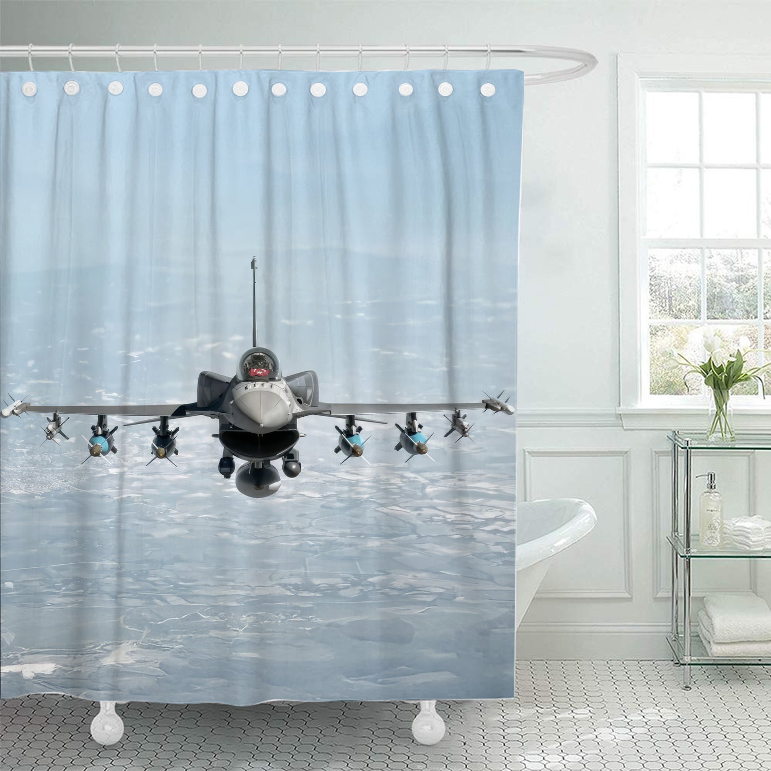 F-16 Head on in Flight Shower Curtain