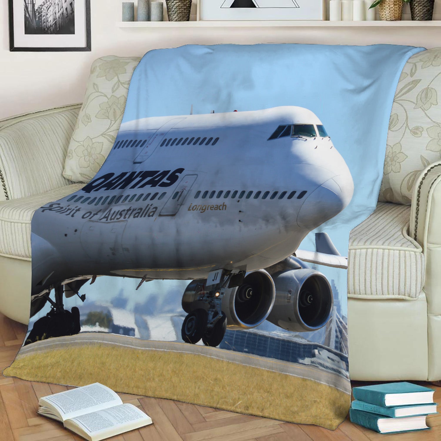 Qantas 747-400 Up Close Fleece Throw Blanket