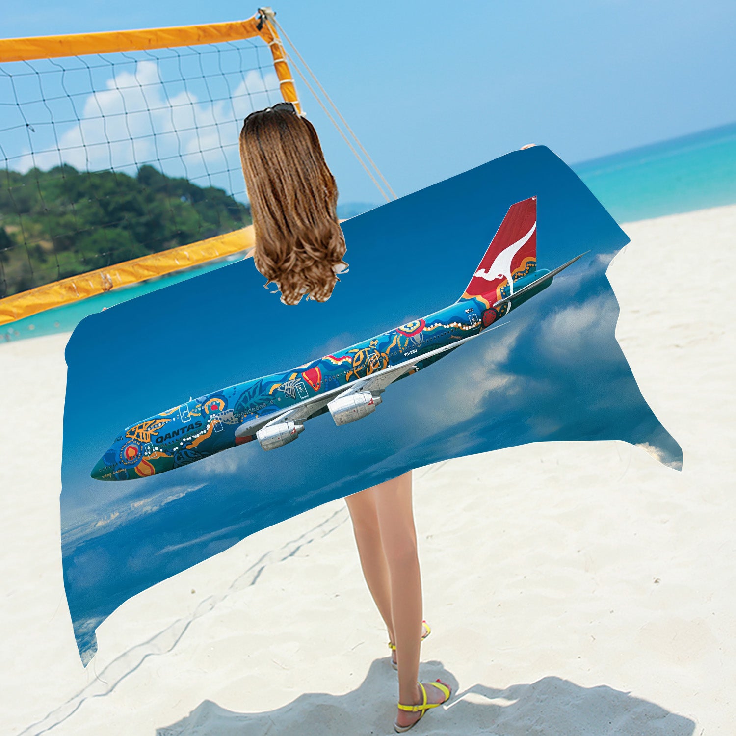 Qantas Nalanji Dreaming Livery 747-300 Beach / Bath Towel